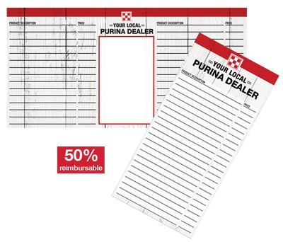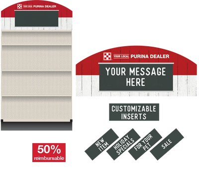 These Endcap Toppers are made to fit 36” wide endcaps. With a printed whitewashed wood background, red overlay and the “Your Local Purina® Dealer” logo, these attractive toppers will make your endcaps a definitive point-of-purchase for your customers.