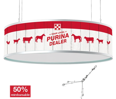 The Purina® Ceiling Halo is an innovative and attractive option for highlighting your feed department.